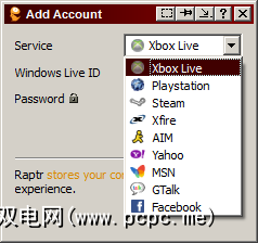 在客户端中,就像Xfire一样,您可以管理多个不同的社交帐户和IM客户端。 Raptr提供了您可以通过其进行连接的更多网络选择。