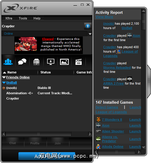 您可以称其为“体积庞大",并且顶部有大量广告。我在Xfire上有100多个朋友,而且您可以看到(星期四美国东部标准时间上午8点),事情并不是最活跃的。 “活动报告"选项卡是查看您的朋友在哪里度过闲暇时间的好方法。至于使用Xfire来处理和启动游戏的方式,我从来没有考虑过这样做。我有一个桌面,“开始"菜单和Steam。 Xfire在那里没有用。