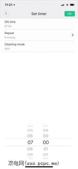 最有用的功能是可以看到预定的清洁时间,并且这里的选项数组。有了多个时间表并在工作日或周末重复,可以很容易地设置适合您家的时间表。