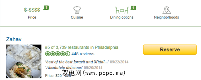 Urbanspoon (城市勺子)是一种区域性工具,使用“微调"方法操作,可帮助您找到吃饭的地方。涉及三个因素-位置,美食类型和价格范围-您可以“锁定"过滤器以获得更具体的结果。结果会根据考虑到用户投票的算法进行排名。
