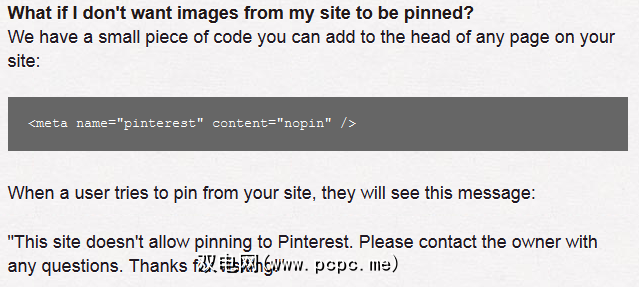 如果您想阻止人们固定您所拥有的网站中的图片,Pinterest会提供一小段代码,您可以将其添加到