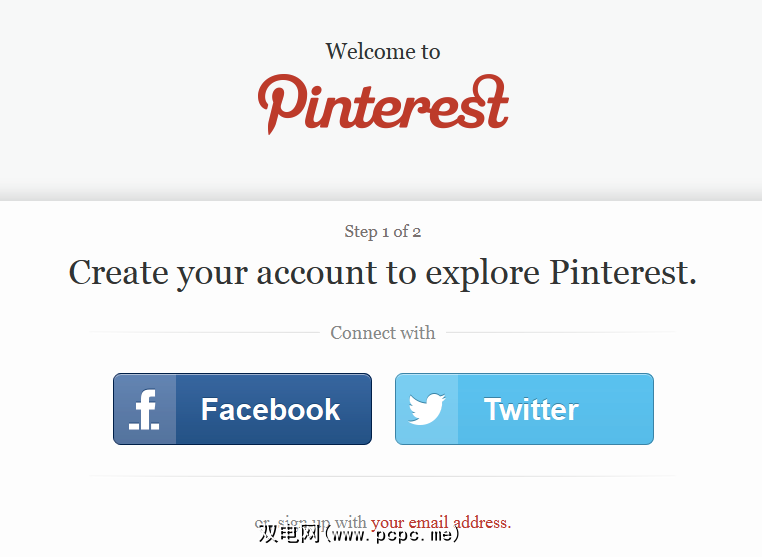 也许您不确定是否要将Facebook和/或Twitter帐户连接到Pinterest。没问题。请改用您的电子邮件地址注册。以后,您始终可以在“帐户设置"中将Pinterest连接到Facebook和Twitter。