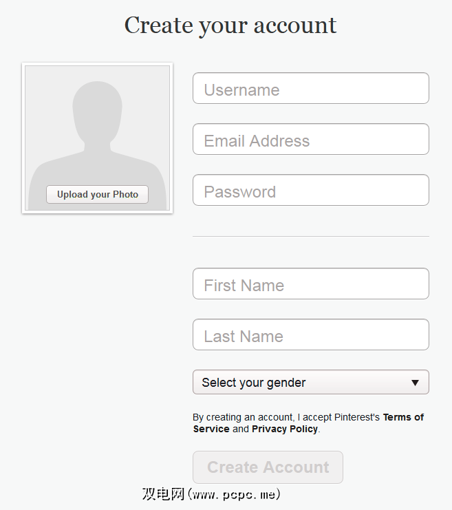 如果您选择使用电子邮件地址进行注册,则需要向Pinterest提供一些信息。要创建您的帐户,您必须提供: