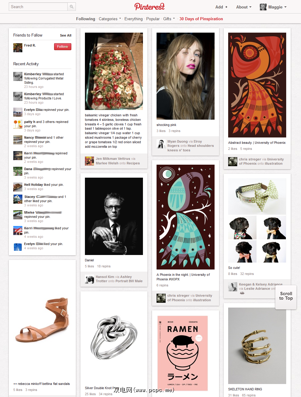 好的,现在是放映时间。您的Pinterest主页上显示了您关注的所有Pinners和木板上的最新Pins。
