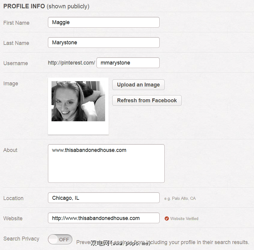 如果您拥有网站,则可以使用Pinterest的“验证网站"功能来显示您在Pinterest个人资料中拥有该网站。验证网站后,在Pinterest搜索结果中的域名旁边会显示一个复选标记,并且完整的网站地址和复选标记会显示在您的Pinterest个人资料中。验证您的网站的步骤取决于一些变量。 2012年10月24日在support.pinterest.com上的帖子说:“目前,您只能验证顶级域名,例如www.example.com。对于大多数博客,我们建议使用HTML元标记选项来验证您的博客。不幸的是,WordPress用户此时将无法验证其博客。"有关如何验证您的网站的更多信息,请参阅support.pinterest.com。
