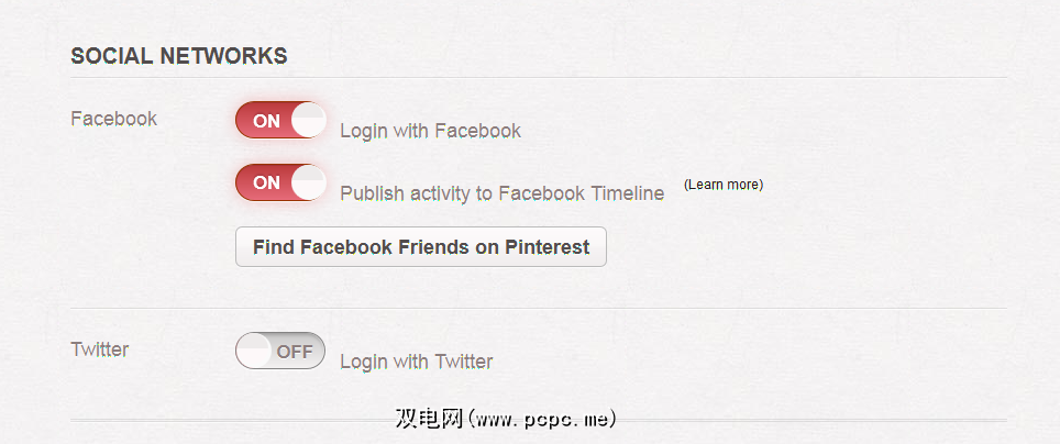 如果您希望使用Twitter帐户登录Pinterest,则可以在此处激活该功能。