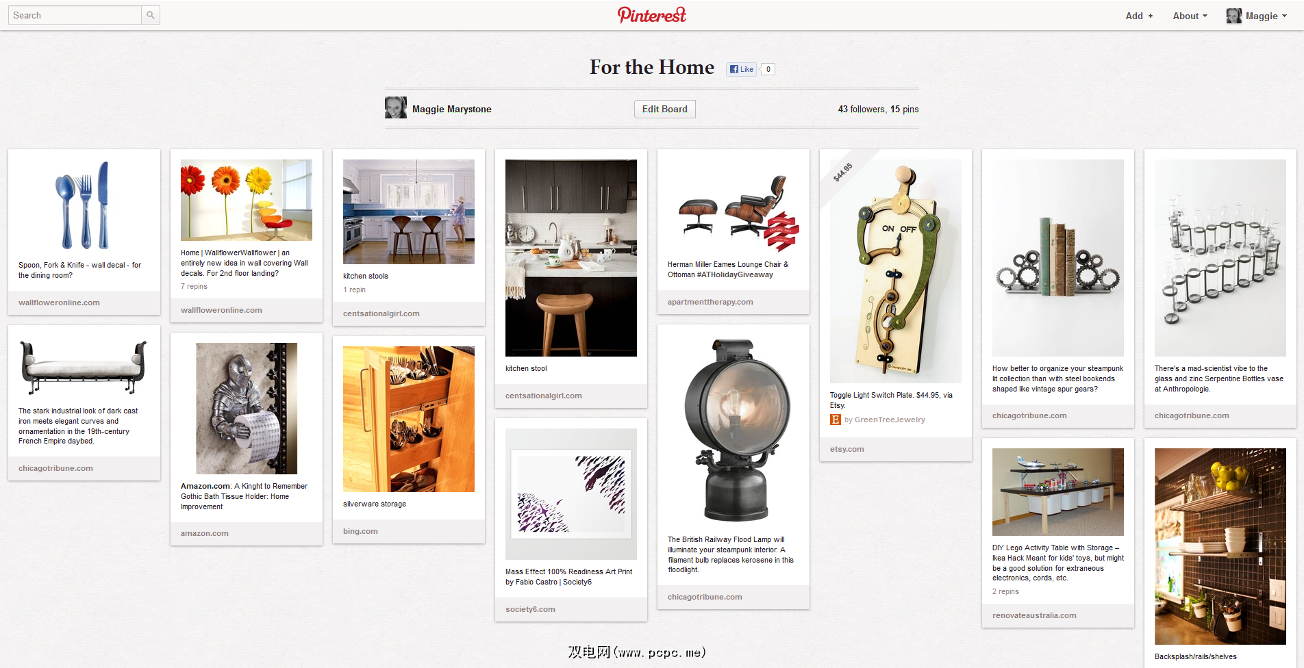 在您的个人资料页面上,单击您的一个板上将显示您固定到该板上的所有内容。不幸的是,这时您无法重新排列板上引脚的顺序。它们按照您固定它们的顺序显示,最新的显示在先。许多人希望能够重新排列他们的针脚。 Pinterest在推出用户要求的功能方面拥有良好的记录,因此我敢保证此功能将在不久的将来提供。