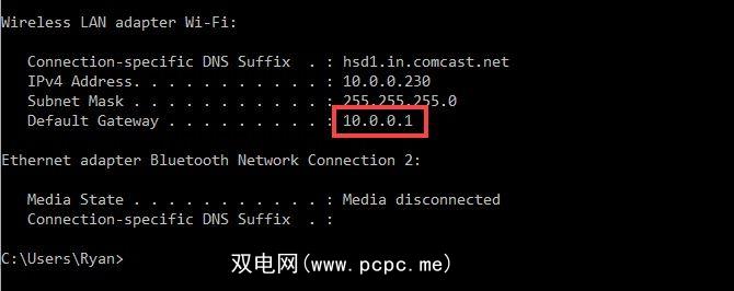 在您自己的PC上,打开CMD提示符并键入: ipconfig 。
