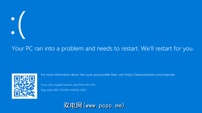 此屏幕最相关的部分位于底部,其中列出了“停止码"。在我们的示例中,停止代码为“ BAD_SYSTEM_CONFIG_INFO"。您的可能有所不同。这是因为停止代码是一个标识符,可以帮助您首先理解为什么收到此错误。
