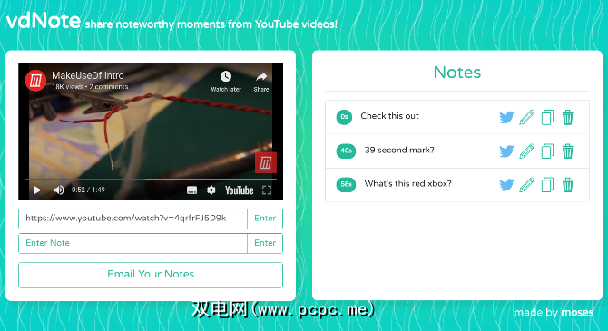 使用起来再简单不过了。这里没有注册,因此只需将URL添加到第一个栏中,然后按Enter键即可开始观看。然后将您的笔记添加到第二个栏中,它将自动显示在右侧并带有时间戳。在这里,您也可以自由编辑注释。完成后,与您想要的任何人共享链接。单击便笺将立即将视频剪切到该点。