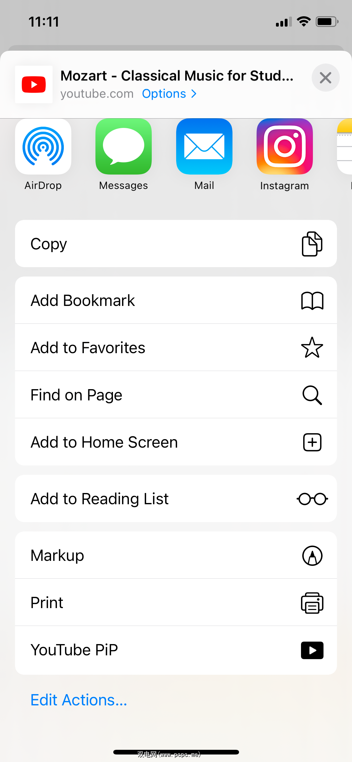 要使用快捷方式,请在 Safari 中打开 YouTube 并转到您想要的视频。然后,在 Safari 中点击页面底部的共享按钮。在这里,您将看到YouTube PiP选项。点击此按钮,视频将以画中画模式打开。