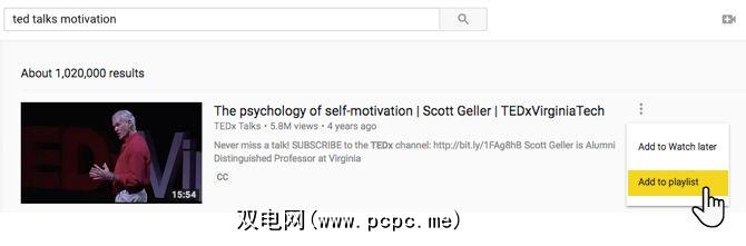 方法1:浏览搜索结果。对于您喜欢的任何视频,请单击三个垂直点>添加到播放列表。