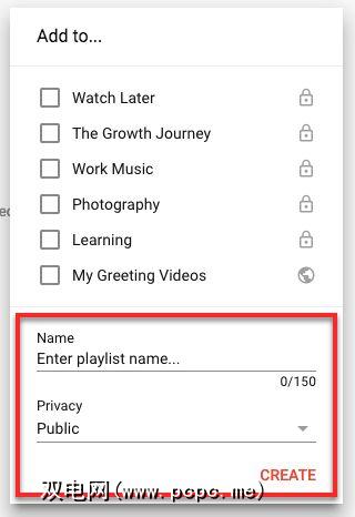 最后,单击创建。您现在可以按照相同的方法将新视频添加到此播放列表。
