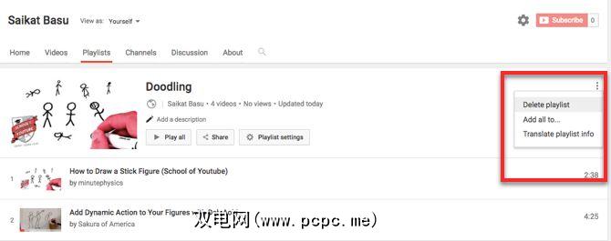 显示的页面为您提供了管理播放列表的所有选项。点击播放列表名称最右边的三个垂直点(更多)。