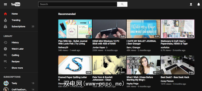 启用后,YouTube的暗模式将如下所示: