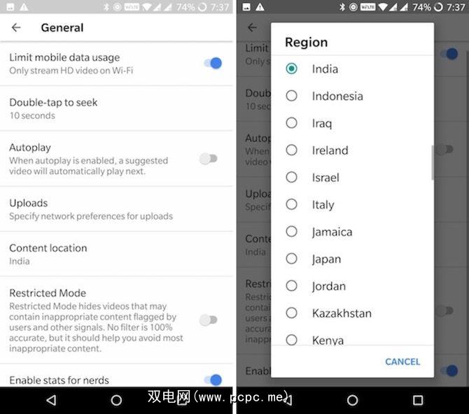 更改区域:如果您不喜欢您所在国家/地区的趋势部分,或者您想要观看不受欢迎的视频您可以在您所在国家/地区使用,可以从设置>常规>内容位置切换您的区域。
