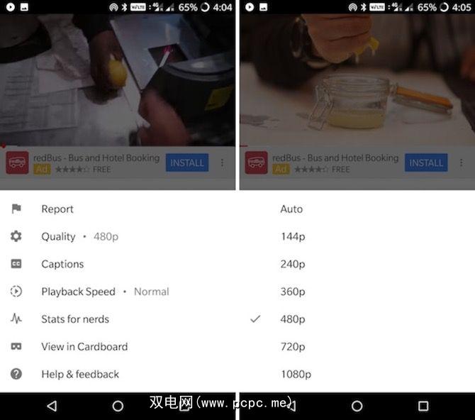 如果您的网络连接速度很快但网络有限,则观看YouTube视频可能会占用您很大的带宽。开始观看视频时,请点击菜单按钮,选择质量,然后切换到较低的分辨率(360p是质量和带宽之间的良好折衷)。