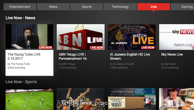 此功能在有大型公共事件要在YouTube上进行实时流传输时特别有用。如果活动有多个直播,您通常会在“直播"类别中找到它们。