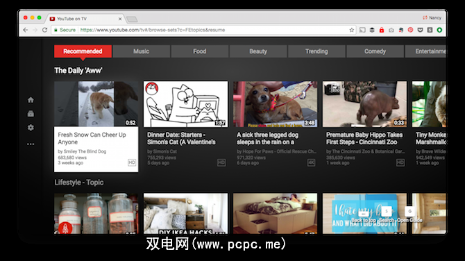 即使您无权访问电视上的YouTube,您实际上可以将计算机上的网络应用程序与电视上的YouTube一起使用此界面。此界面与您在电视上看到的界面相同,甚至在滚动浏览视频和类别时也可以看到声音效果。