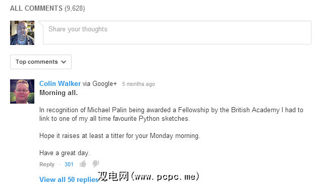 首先,这可能是最重要的更改,注释默认情况下被排序为“ Top Comments "。 (尽管您可以根据需要按最新过滤器进行过滤)。默认情况下,拥有“热门评论"的好处是,您将首先看到被评论最多的评论,来自Google+圈子中的人以及视频所有者的评论。这意味着所有巨魔都将被掩埋!打扰一下,请打开瓶香槟。
