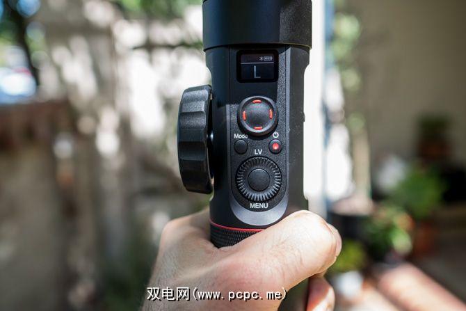您有一个操纵杆,可以根据模式更改倾斜和旋转,如果您有兼容的相机(目前为佳能),则可以使用拨盘访问菜单和相机设置。您还会在手柄上找到一个随动聚焦轮,该聚焦轮目前仅适用于佳能用户。